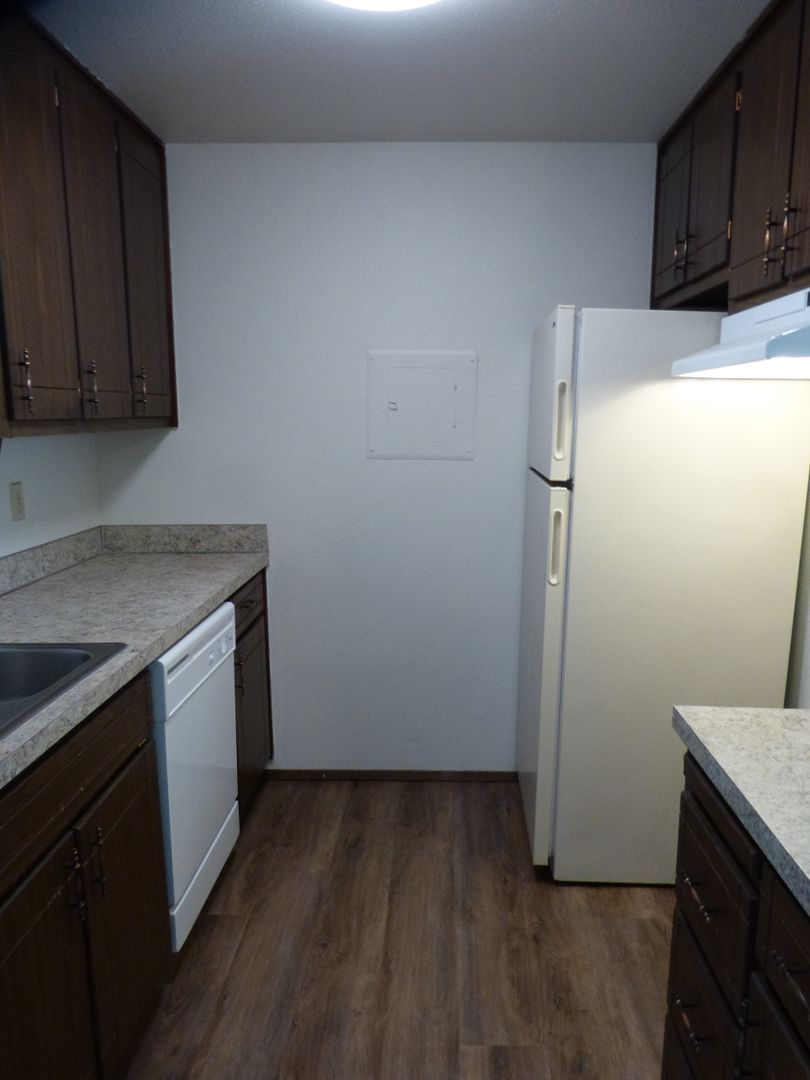 This one bedroom unit features new hard surface floor coverings, fresh paint and in unit washer/dryer. There is a deck off the living room with a small locked storage space. The location is close to schools, shopping, and other amenities.